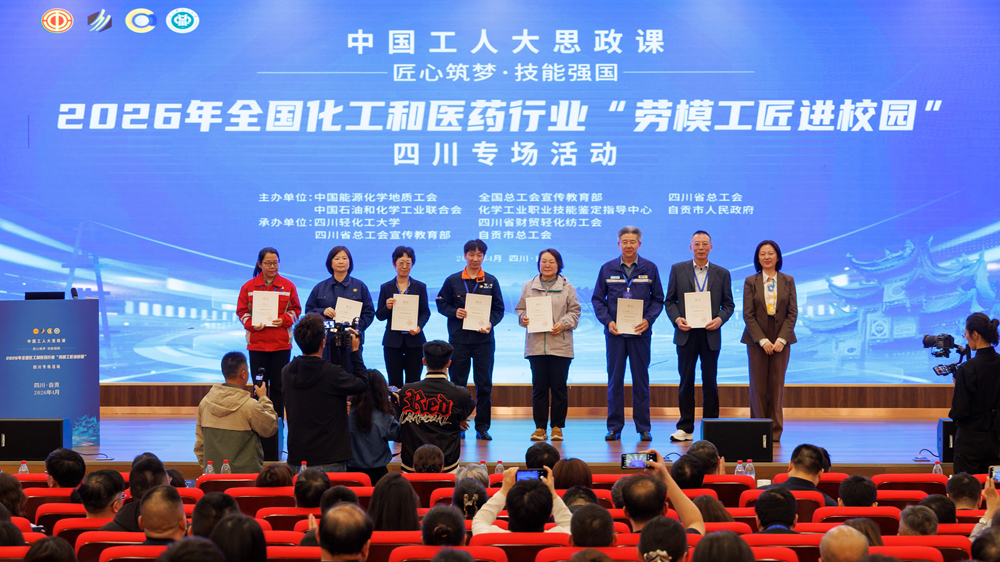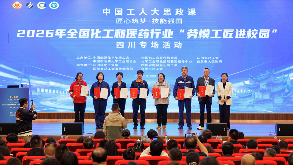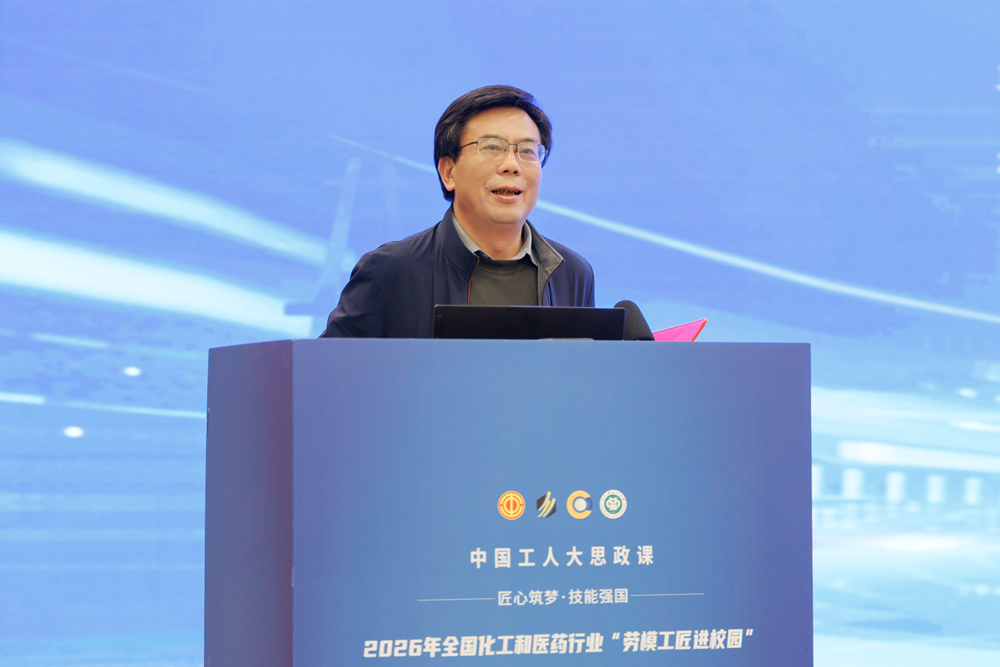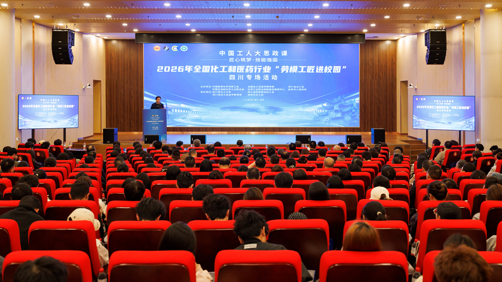 4月1日,由中国能源化学地质工会、全国总工会宣传教育部、四川省总工会、中国石油和化学工业联合会、化学工业职业技能鉴定指导中心、自贡市人民政府联合主办,四川轻化工大学、四川省财贸轻化纺工会、四川省总工会宣传教育部、自贡市总工会共同承办的“中国工人大思政课——2026年全国化工和医药行业‘劳模工匠进校园’四川专场活动”在李白河校区举行。