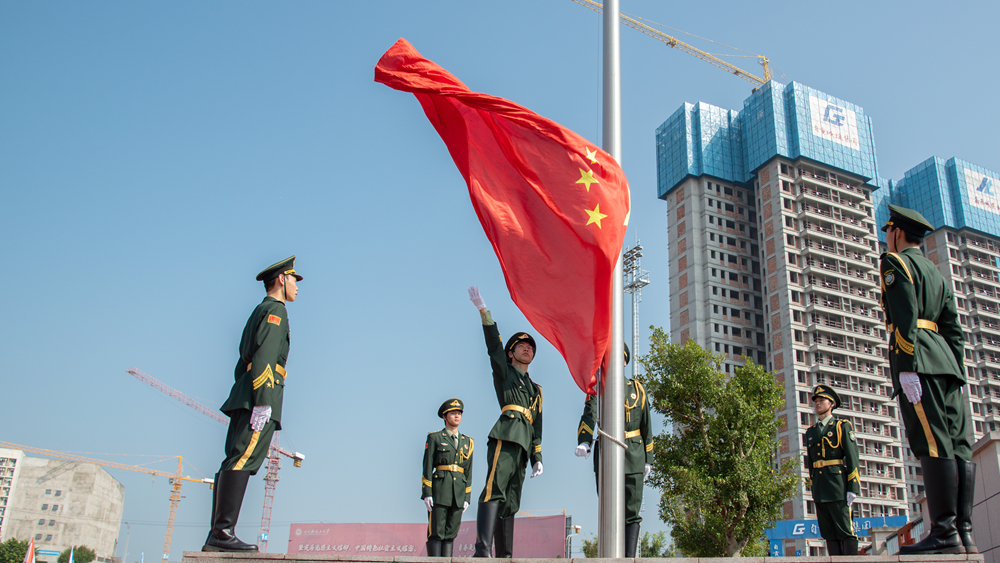 在雄壮的《义勇军进行曲》中,五星红旗冉冉升起,迎风飘扬。全体师生行注目礼,高唱国歌,爱国情怀在每个人心中激荡。