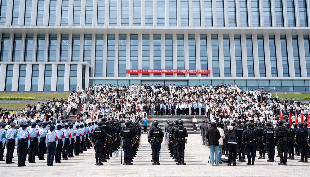 4月15日是第11个全民国家安全教育日,我校以“统筹发展和安全 护航‘十五五’新征程”为主题,联合自贡市公安局在李白河校区科技广场举行2026年全民国家安全教育日暨国家安全宣传教育月活动启动仪式。学校党委常委、副校长吴亚东,自贡市公安局党委委员、副局长魏家鲜,大安区委副书记俞秉兰等出席,自贡市及学校相关职能部门负责人、学校各学院师生代表共3000余人参加活动。
