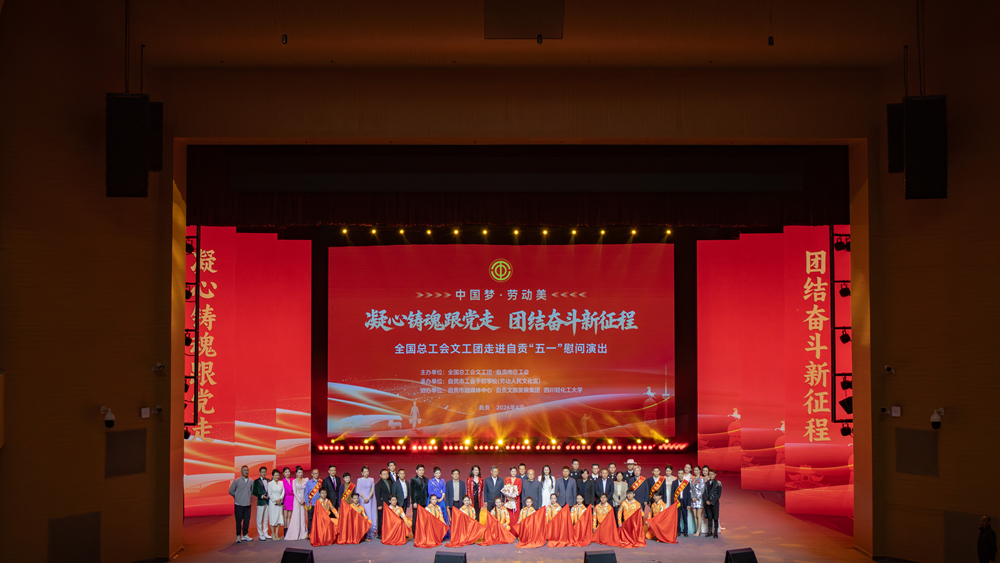 4月21日晚,“中国梦·劳动美——凝心铸魂跟党走 团结奋斗新征程”全国总工会文工团走进自贡庆“五一”慰问演出在四川轻化工大学李白河校区盐都大剧院精彩上演。本次活动旨在深入学习贯彻党的二十届历次全会精神,全面贯彻习近平总书记关于工人阶级和工会工作的重要论述,大力弘扬劳模精神、劳动精神、工匠精神,传承中国工人阶级的优良传统,丰富职工与高校师生文化生活,凝聚奋进新征程的磅礴力量。